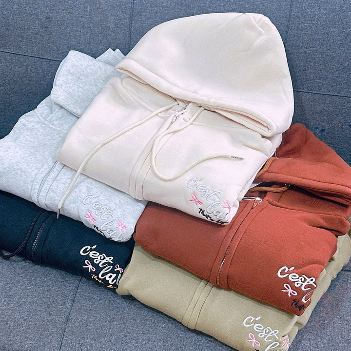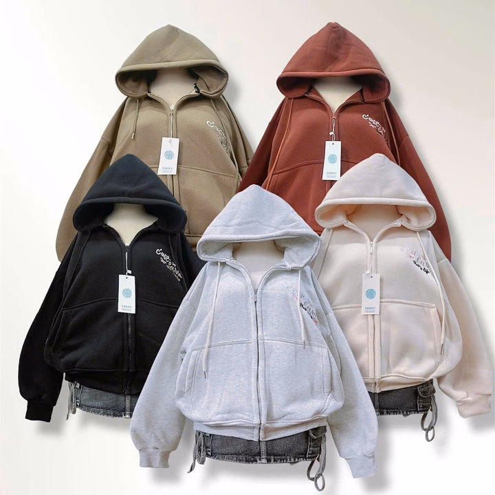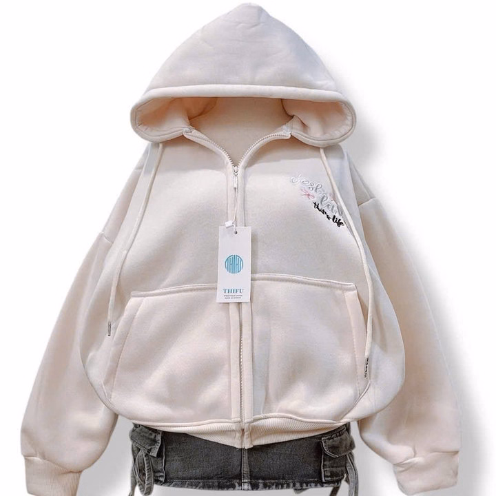 Áo Khoác Dây Kéo Vải Nỉ Phối Sọc Thân In Nổi Chữ Ở Mũ, Có Túi Trong Rộng Tp60 – Golden Dream