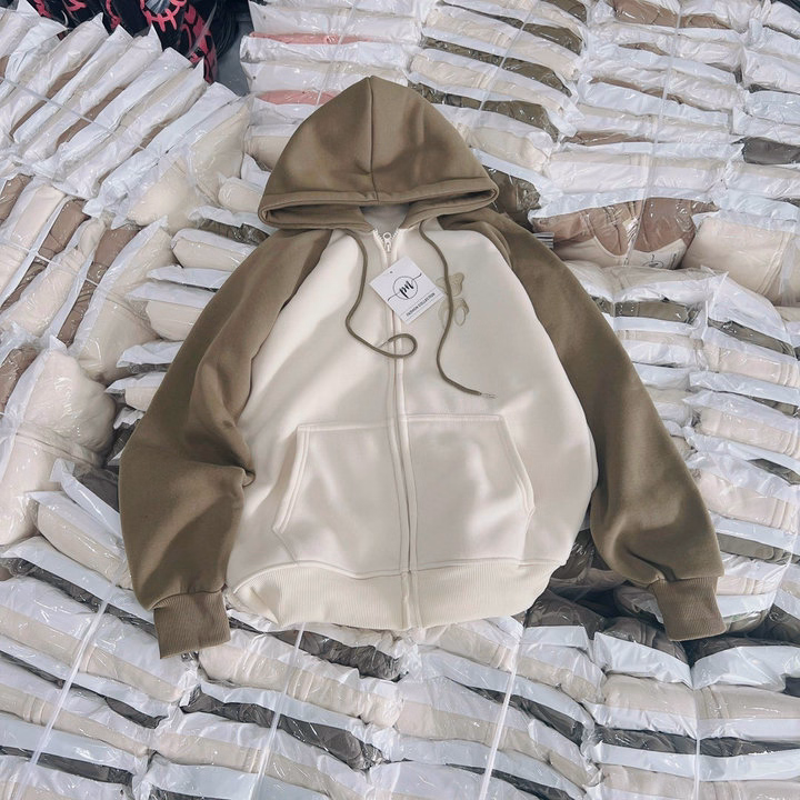 Áo Khoác Dây Kéo Vải Nỉ Phối Sọc Thân In Nổi Chữ Ở Mũ, Có Túi Trong Rộng Tp60 – Golden Dream