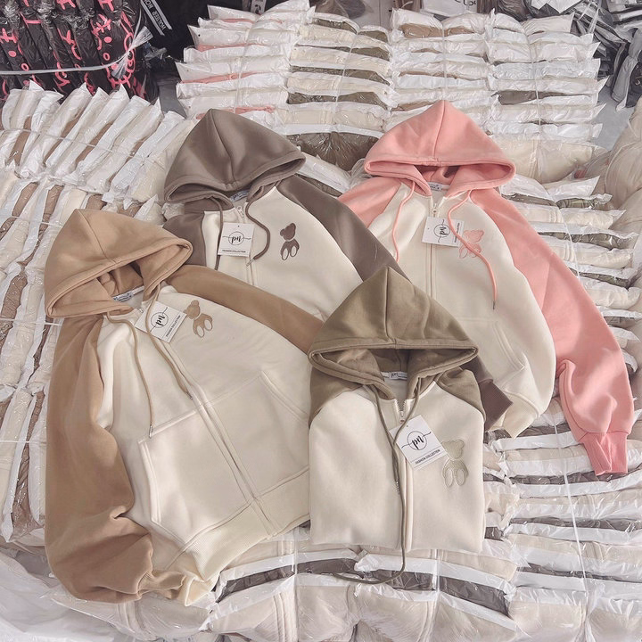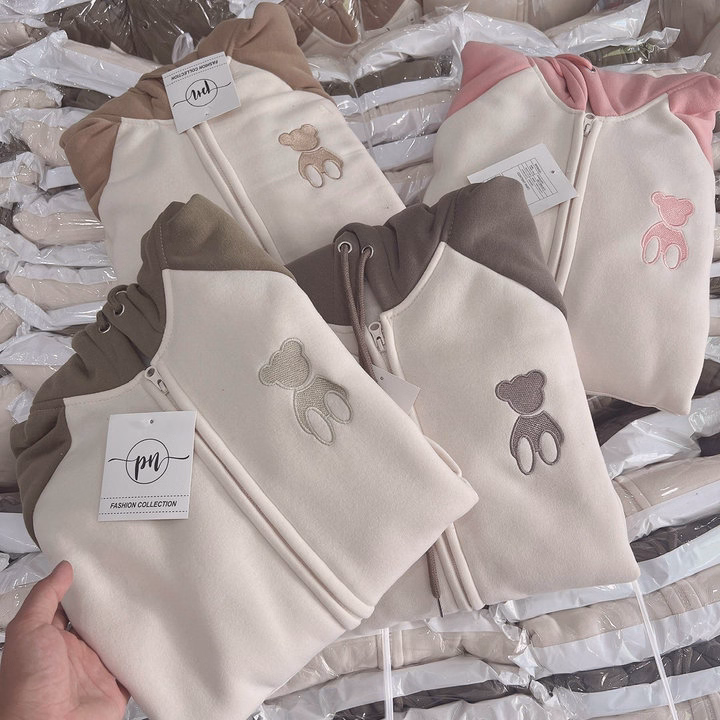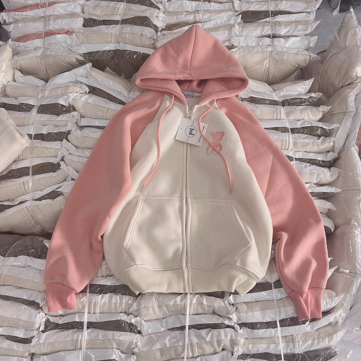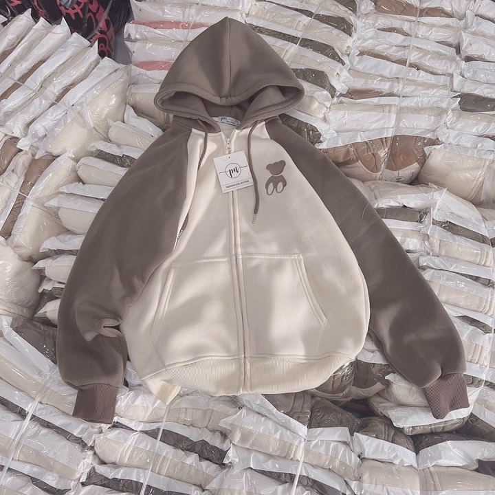 Áo Khoác Nỉ Nam Nữ Họa Tiết Gấu Dễ Thương Phối Khóa Kéo Có Nón Chống Nắng-Htm Fashion