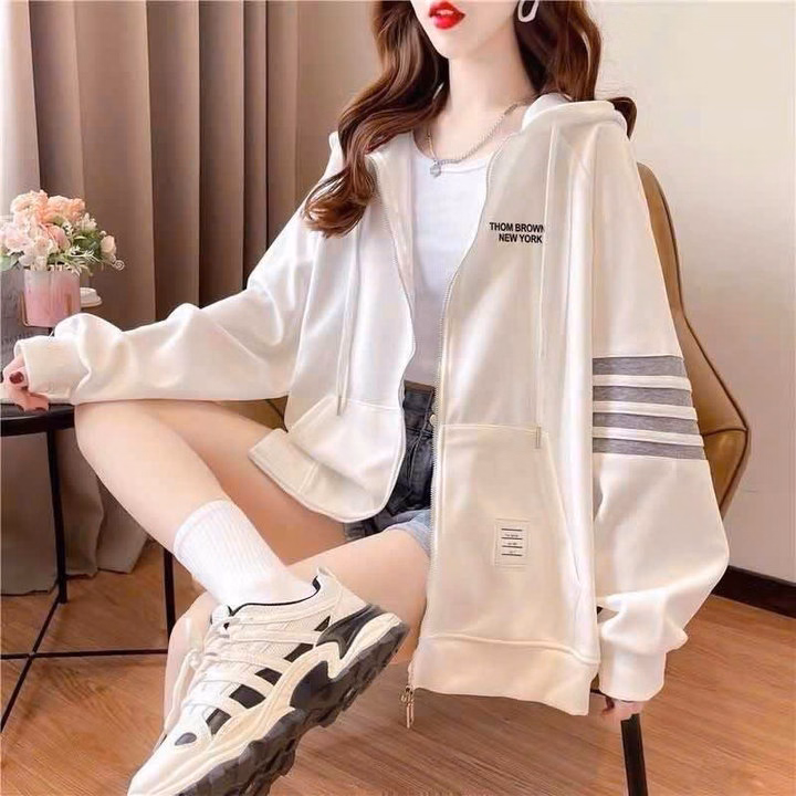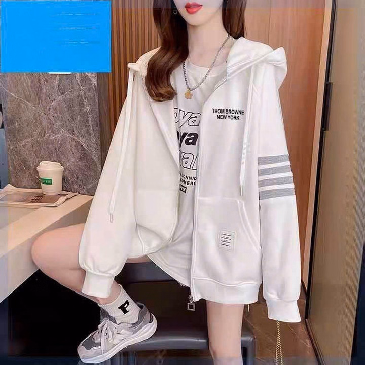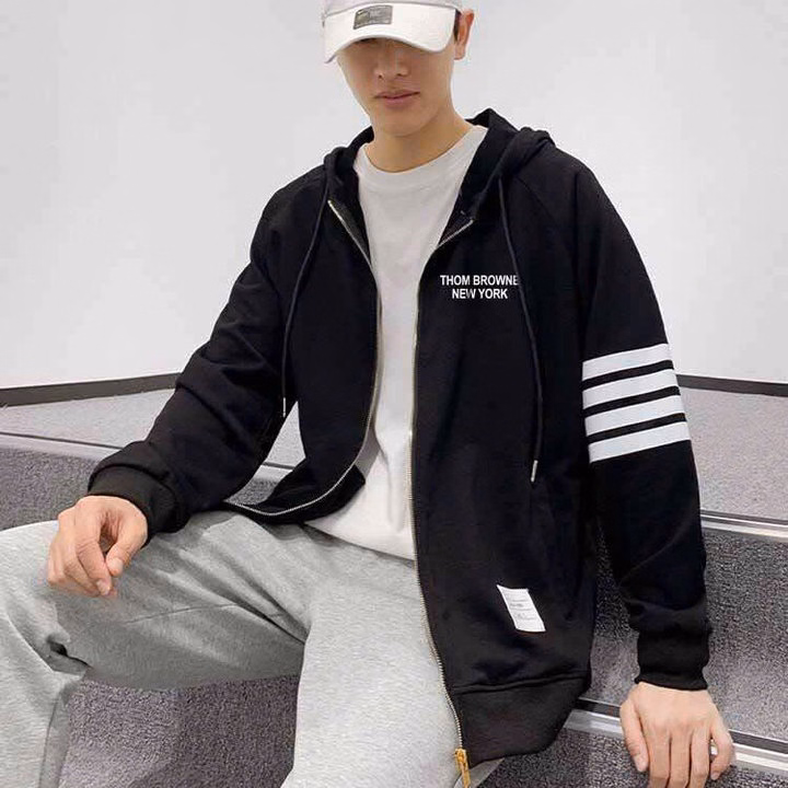 Áo Khoác Nỉ Nam Nữ Unisex Thom Browne 4 Sọc Kẻ Tay Chữ Dập Trước Ngực – Ausa House