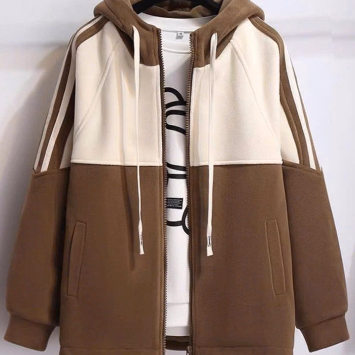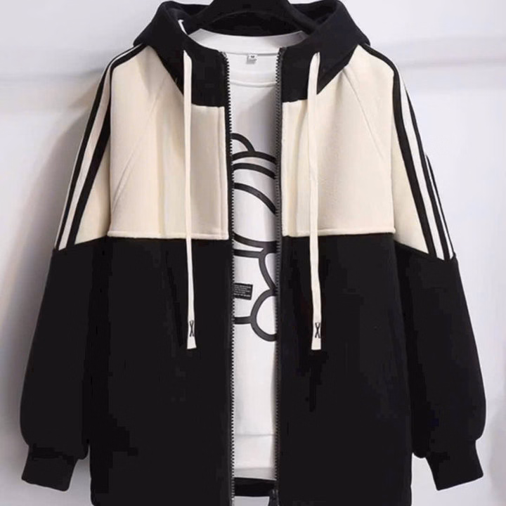 Áo Khoác Dây Kéo Vải Nỉ Phối Sọc Thân In Nổi Chữ Ở Mũ, Có Túi Trong Rộng Tp60 – Golden Dream