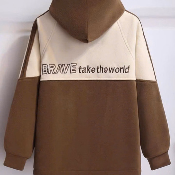 Tên sản phẩm: Áo Khoác Nỉ Nam Phối Màu Chữ Thêu Lưng Brave Đơn Giản Đẹp Ut388 – Golden Dream