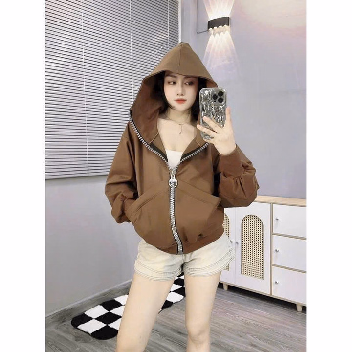 Áo Khoác Dù Gió 2 Lớp Croptop Nữ Thiết Kế Khóa Kéo Cổ Có Nút Bấm – Htm Fashion