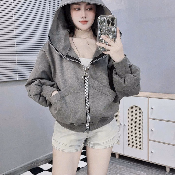 Áo Khoác Nỉ Ngắn Có Túi Trong Dây Kéo To Đùng Siêu Hot – Htm Fashion