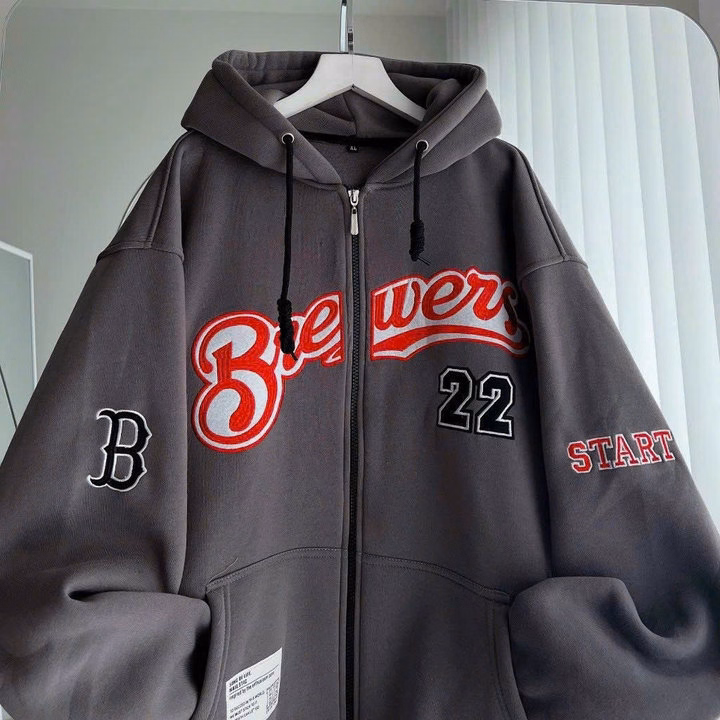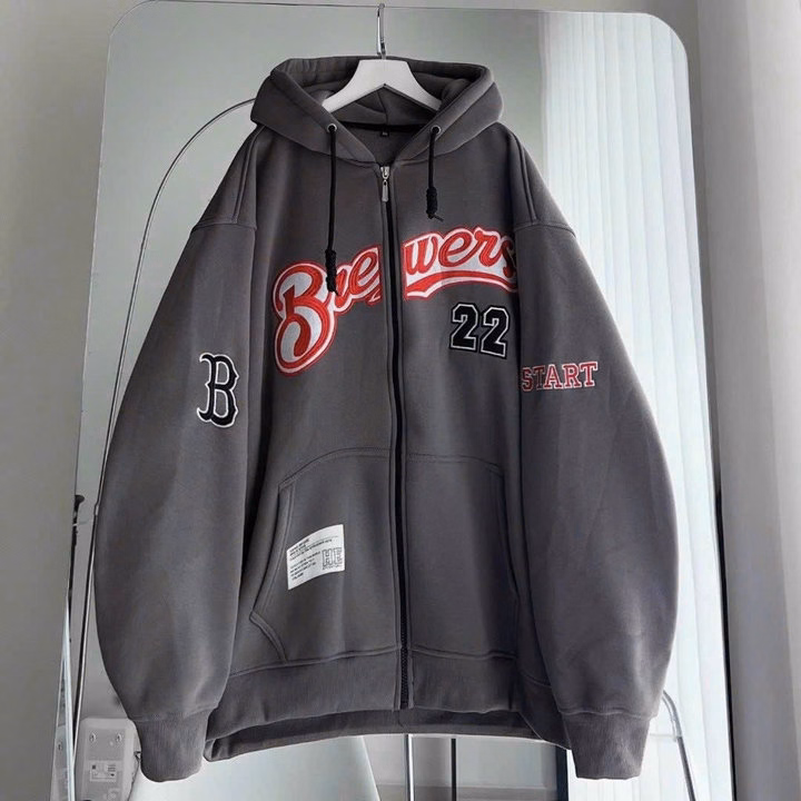 Áo Khoác Nỉ Ngoại Unisex Nam Nữ Màu Xám Thêu Số 22B Form Rộng Đẹp Tp73 – Golden Dream