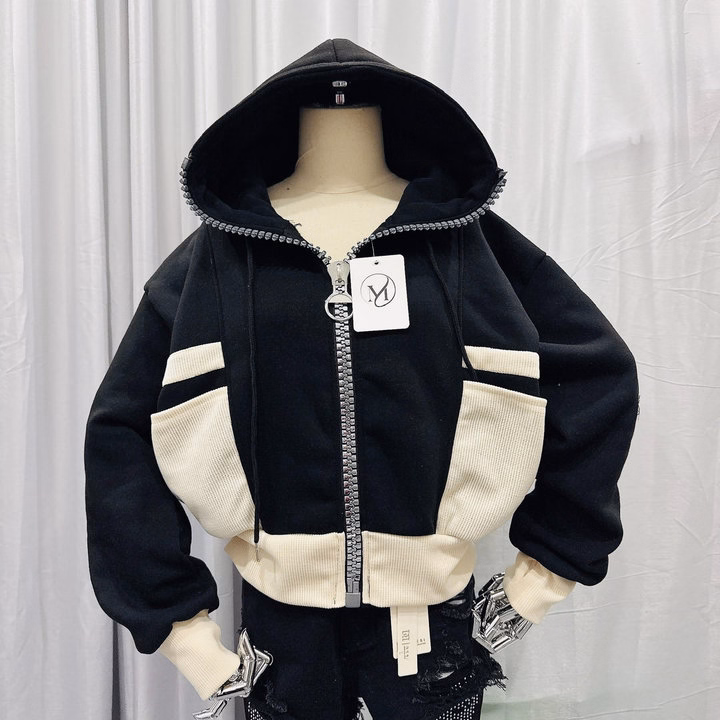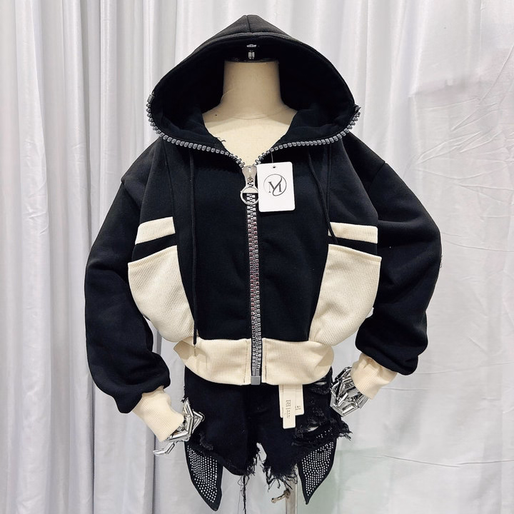 Áo Khoác Nỉ Nữ Có Nón Thiết Kế Khóa Kéo To Phối 2 Túi Phía Trước – Htm Fashion