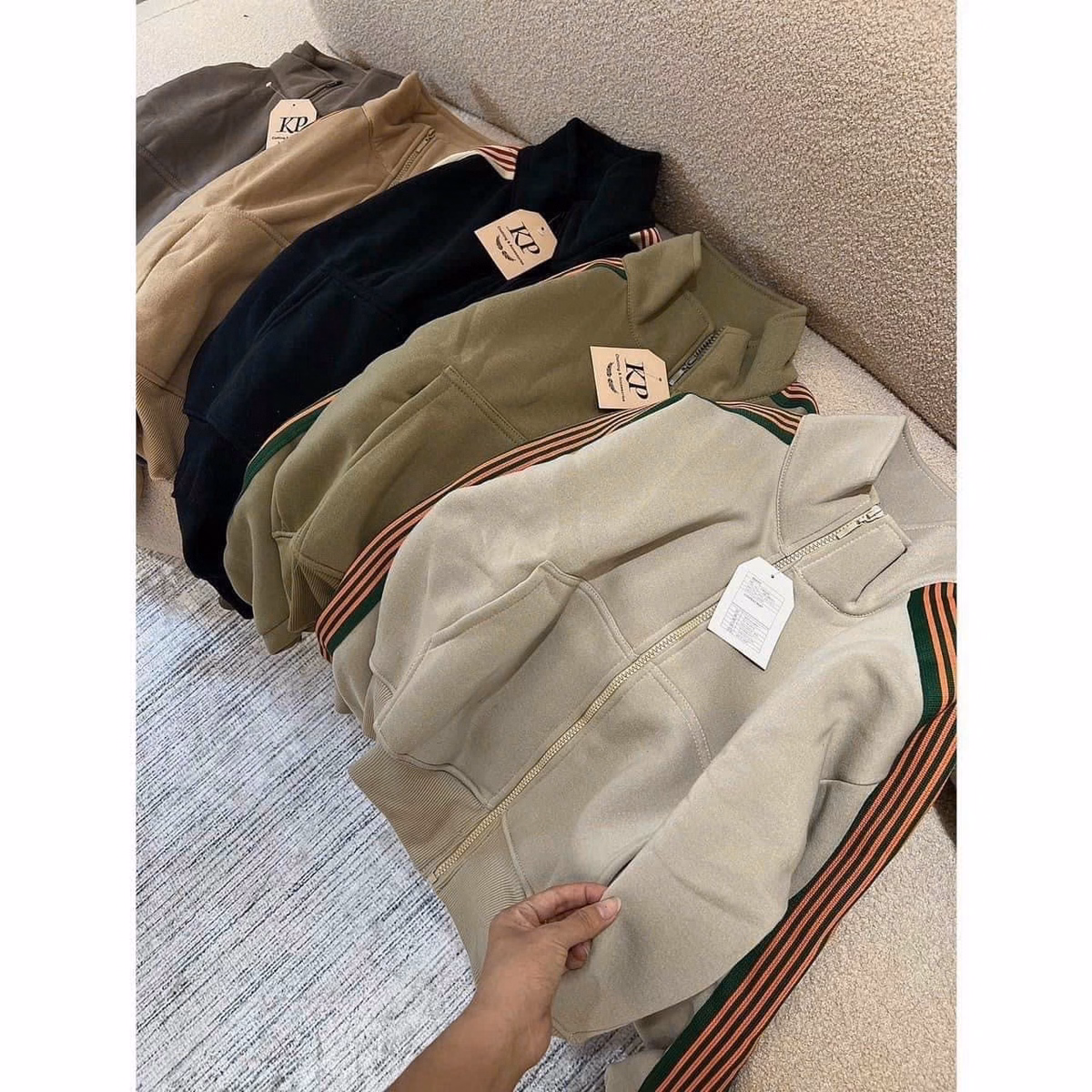 Áo Khoác Dây Kéo Vải Nỉ Phối Sọc Thân In Nổi Chữ Ở Mũ, Có Túi Trong Rộng Tp60 – Golden Dream