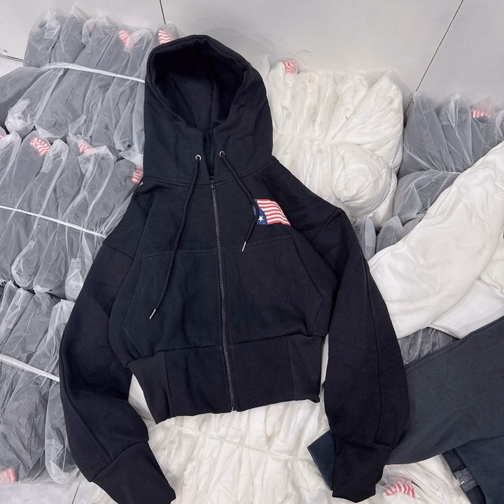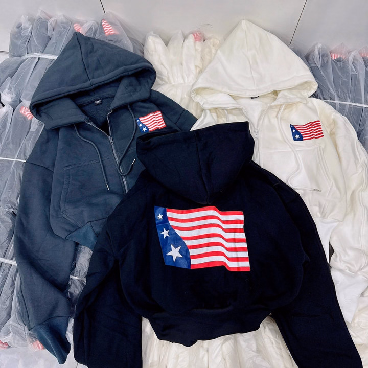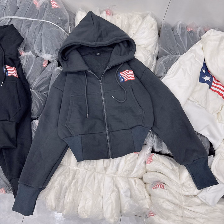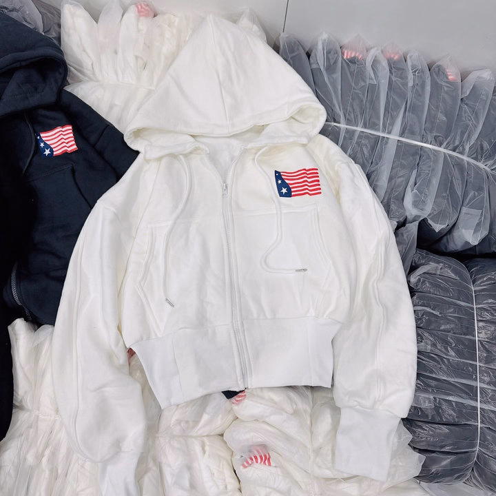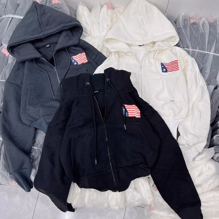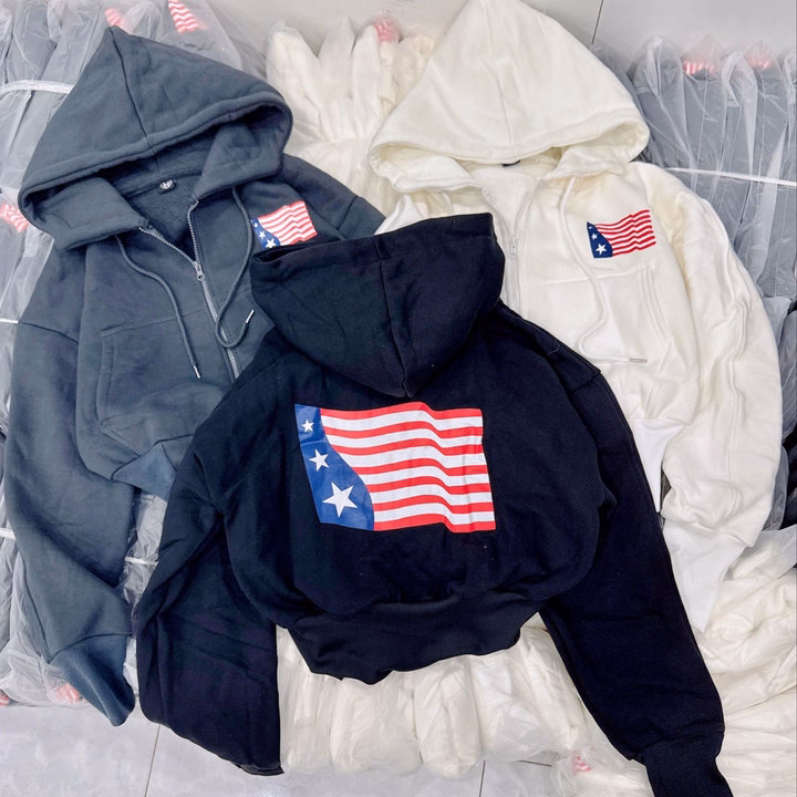 Áo Khoác Nỉ Nữ Croptop Có Nón In Lá Cờ 2 Mặt Áo – Htm Fashion