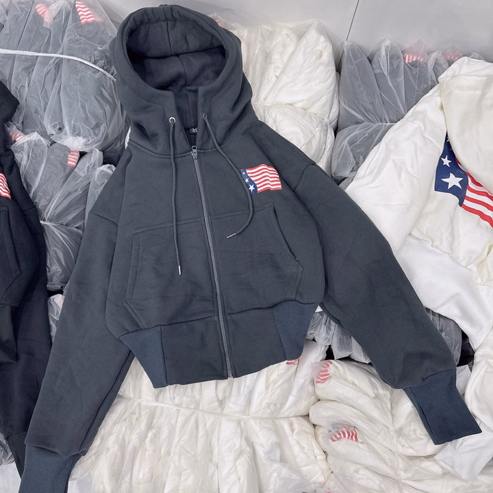 Áo Khoác Croptop Nỉ Nữ Dáng Lửng In Lá Cờ 2 Mặt Trước Sau Có Nón Chống Nắng – Htm Fashion