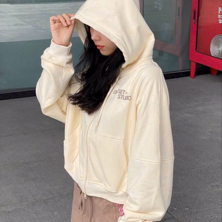 Áo Khoác Dây Kéo Vải Nỉ Phối Sọc Thân In Nổi Chữ Ở Mũ, Có Túi Trong Rộng Tp60 – Golden Dream