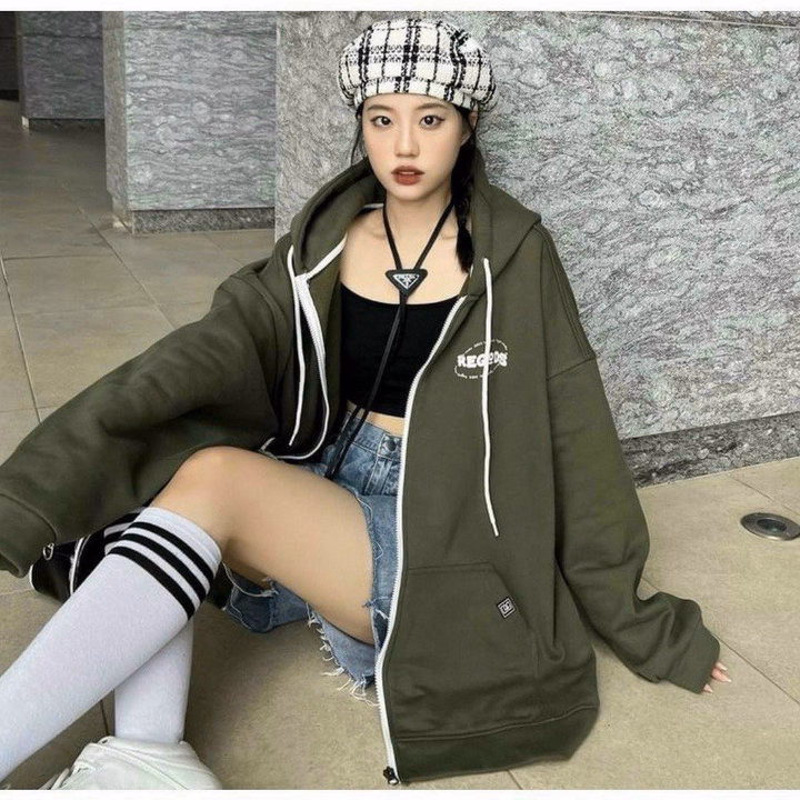 Áo Khoác Dây Kéo Vải Nỉ Phối Sọc Thân In Nổi Chữ Ở Mũ, Có Túi Trong Rộng Tp60 – Golden Dream