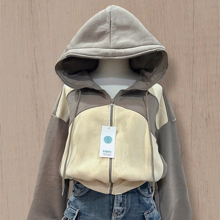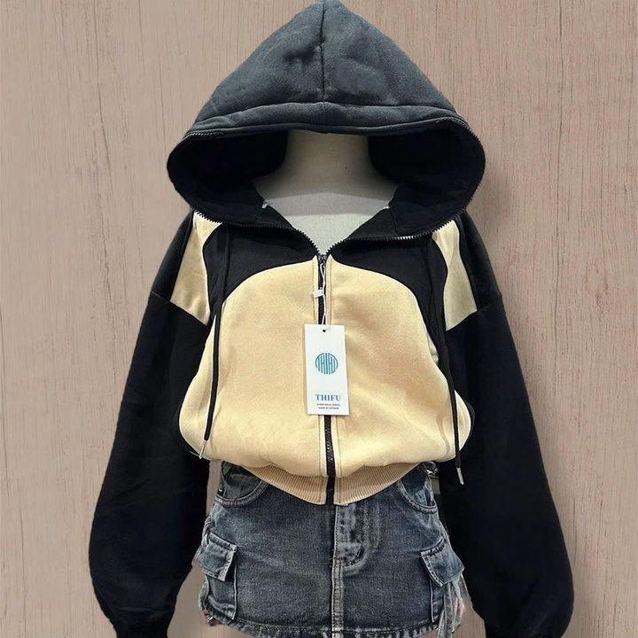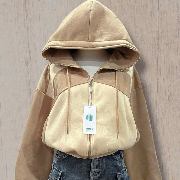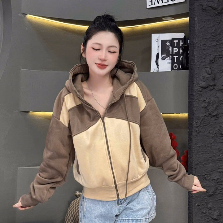 Áo Khoác Nỉ Nữ Dây Kéo Nữ Phối Màu 4 Túi Tay Xỏ Ngón Mũ Rộng Tp63