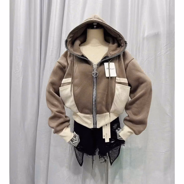 Áo Khoác Nỉ Nữ Form Boxy Phối Khoá Kéo To Hàng Đẹp Có Túi Trong Tp77 – Golden Dream