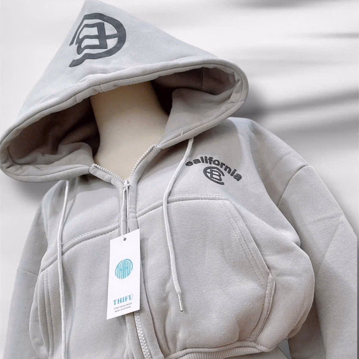 Áo Khoác Croptop Nỉ Nữ Dáng Lửng In Lá Cờ 2 Mặt Trước Sau Có Nón Chống Nắng – Htm Fashion