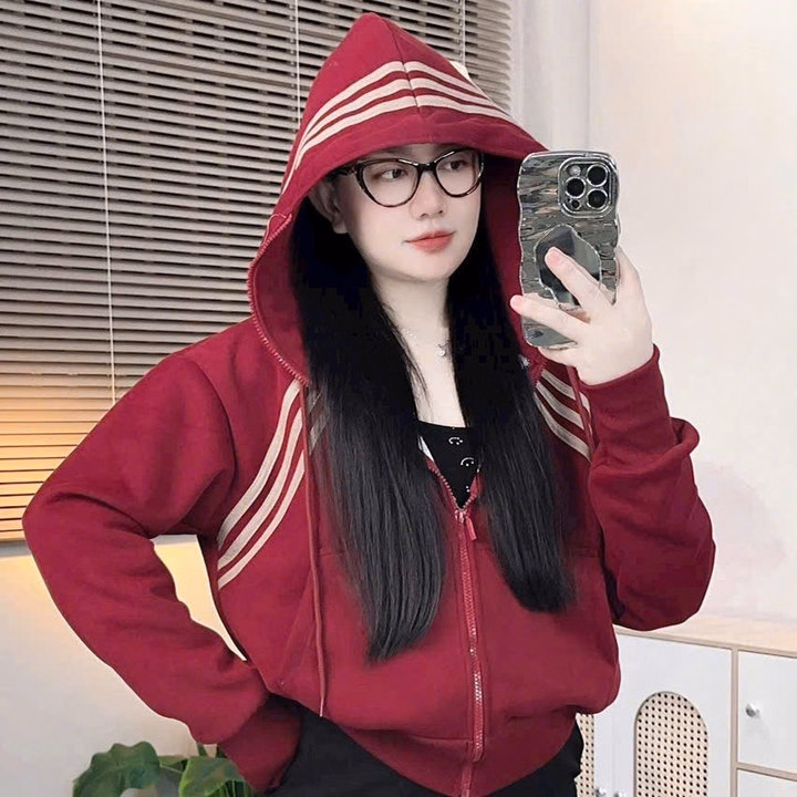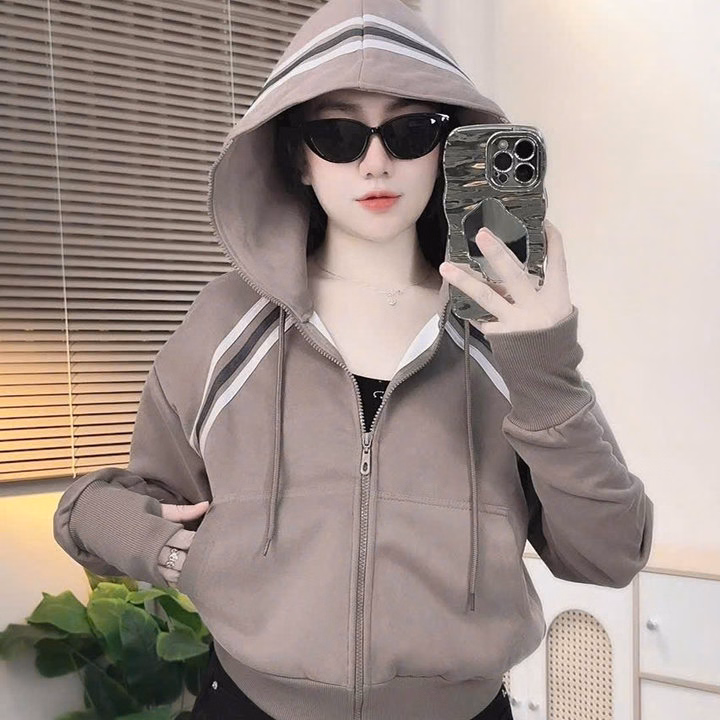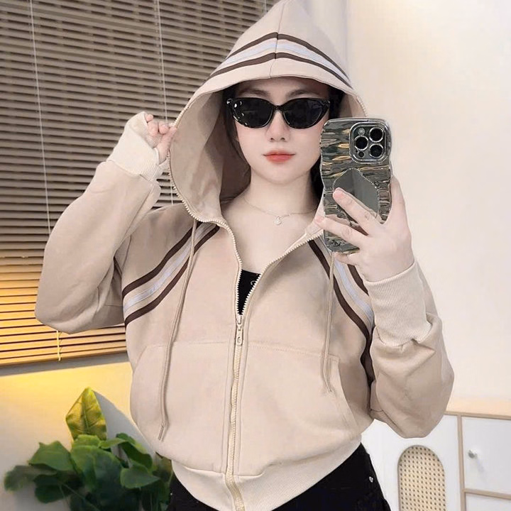 Áo Khoác Nỉ Nữ Form Lửng Phối 3 Sọc Vai Mũ Rộng Chống Nắng Tốt Ut84