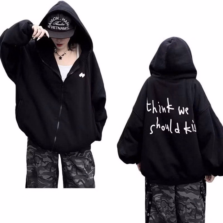 Áo Khoác Nỉ Nữ Form Rộng Có Túi Trong Ép Nổi Chữ Think We Sgould Kis – Htm Fashion