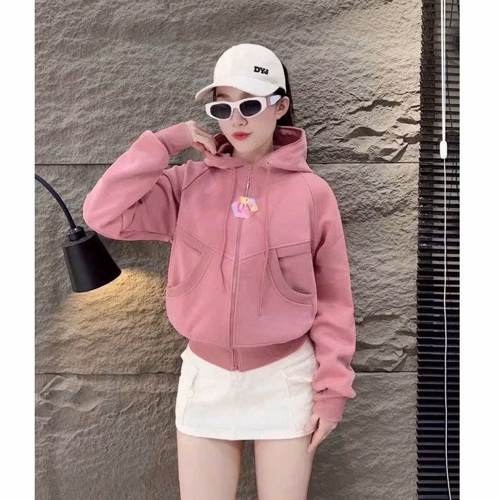 Áo Khoác Croptop Lửng Nữ Có Túi Trong Tay Xỏ Ngón Thêu Nổi Prfc – Htm Fashion