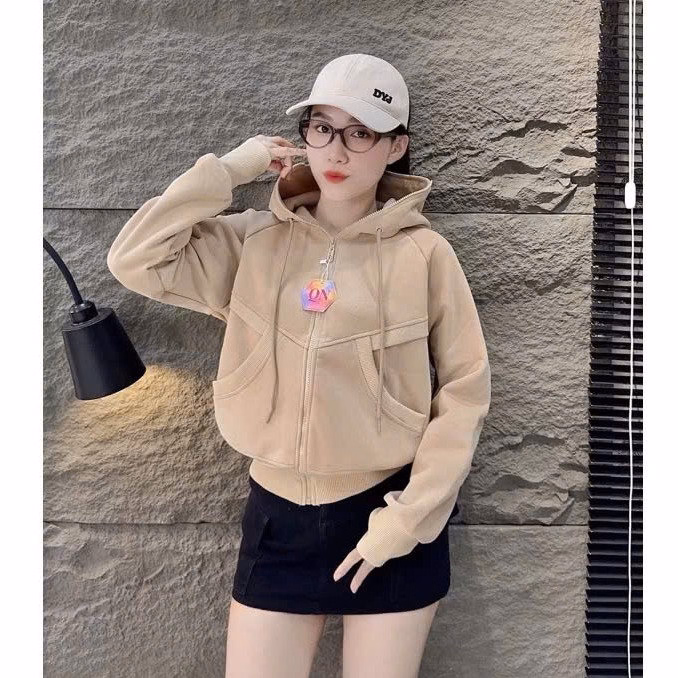 Áo Khoác Dây Kéo Vải Nỉ Phối Sọc Thân In Nổi Chữ Ở Mũ, Có Túi Trong Rộng Tp60 – Golden Dream