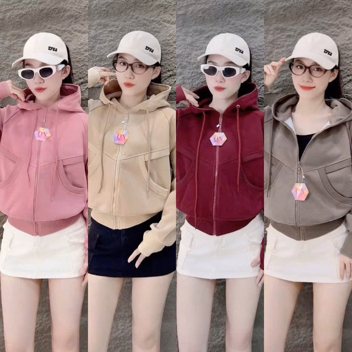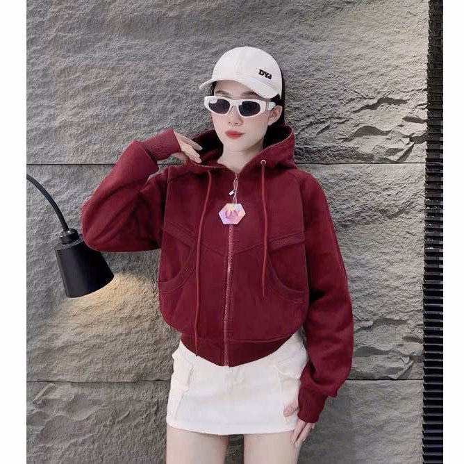 Áo Khoác Croptop Nỉ Nữ Dáng Lửng In Lá Cờ 2 Mặt Trước Sau Có Nón Chống Nắng – Htm Fashion