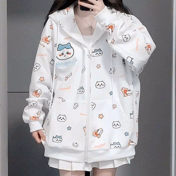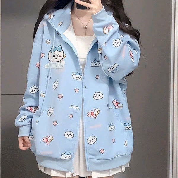 Áo Khoác Nỉ Nữ In Hình Mèo Mũ Xanh Form Rộng Tay Phồng Xinh Xắn Tp30 – Golden Dream