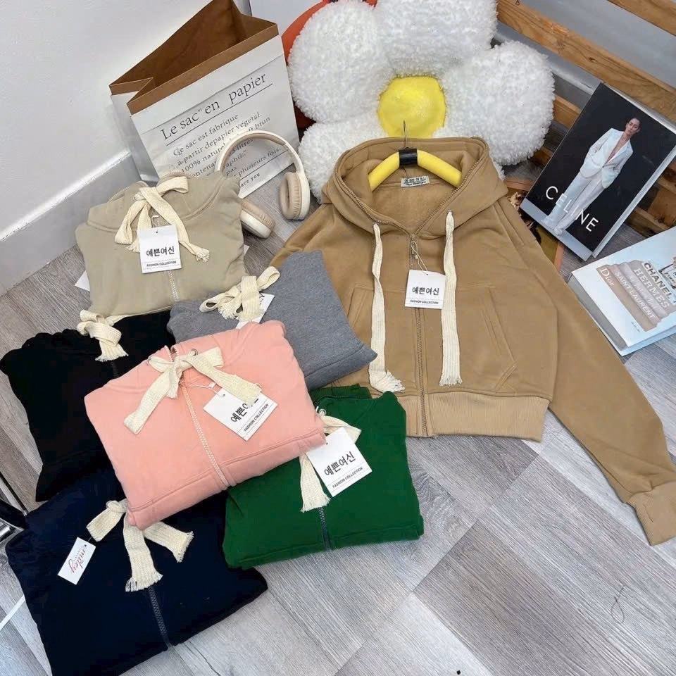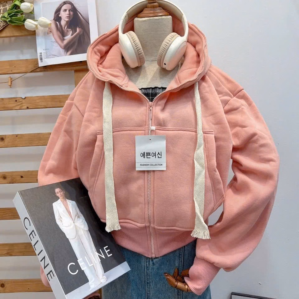Áo Khoác Nỉ Nữ Kiểu Dáng Lửng Form Rộng Chất Vải Dày Mịn Trơn Cí Dây Kéo Dày Thêm Nón Trùm Đầu Đẹp Bo Chun Cực Đỉnh Hàng Hot Trend-Htm Fashion