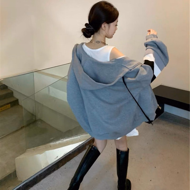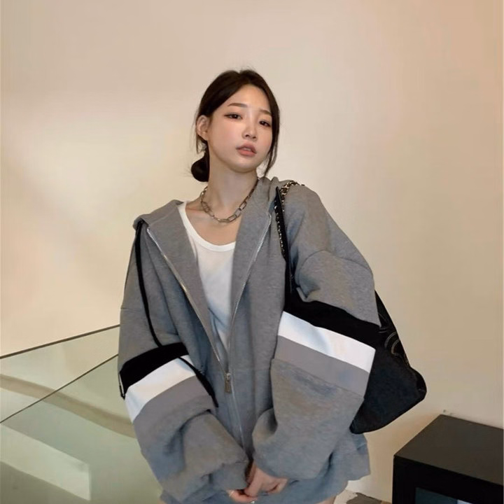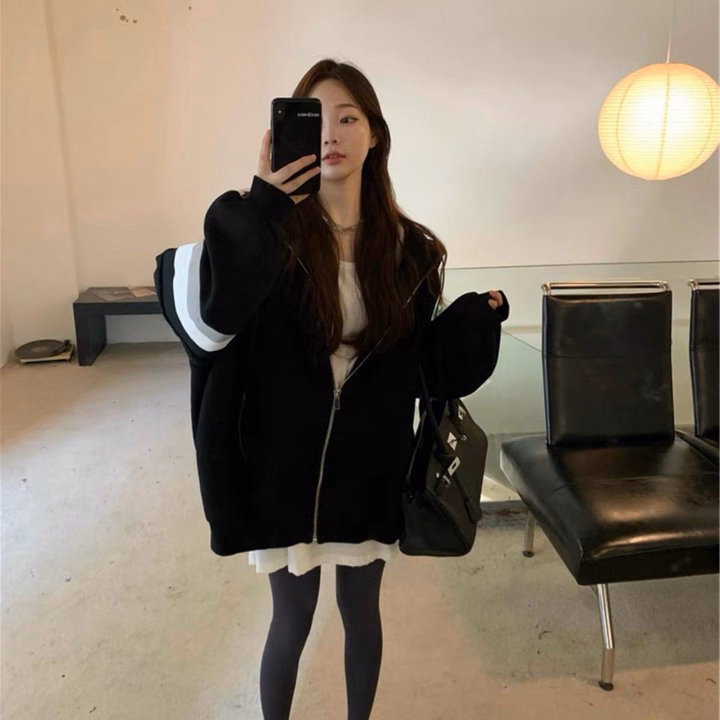 Áo Khoác Nỉ Nữ Ngoại Dây Kéo Kéo Phối Sọc Trắng Vai Siêu Đỉnh Hàn Quốc – Htm Fashion