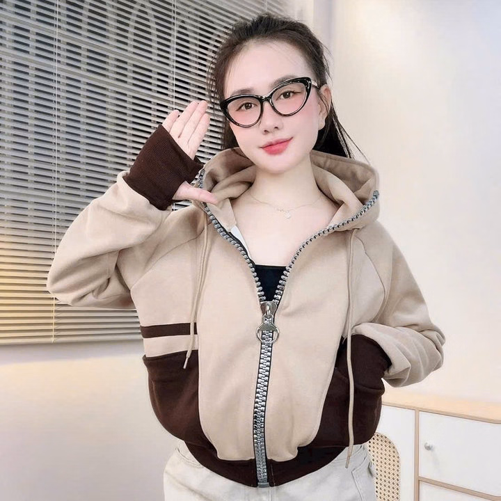 Áo Khoác Nỉ Nữ Phối Khoá Kéo To Mũ Rộng Cùng Màu Có Túi Trong Ut41 – Golden Dream