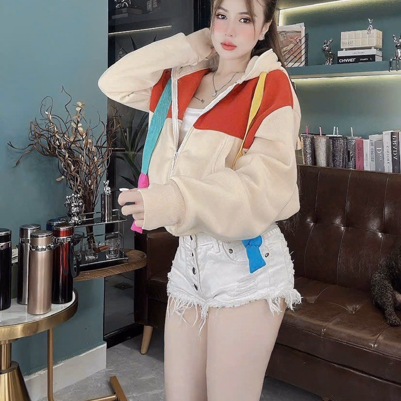 Áo Khoác Nỉ Nữ Phối Theo Phong Cách Hàn Quốc Với Dáng Form Lửng Có Dây Nhiều Màu Siêu Nổi Chất Liệu Vải Nỉ Dệt Siêu Cute Mát Mẻ Hàng Hot Trend-Htm Fashion