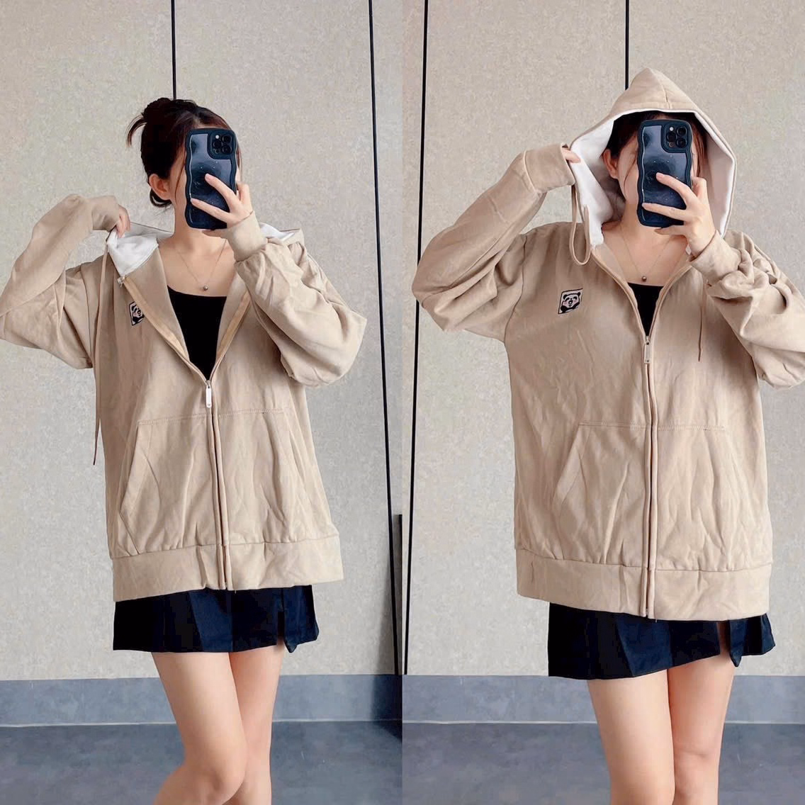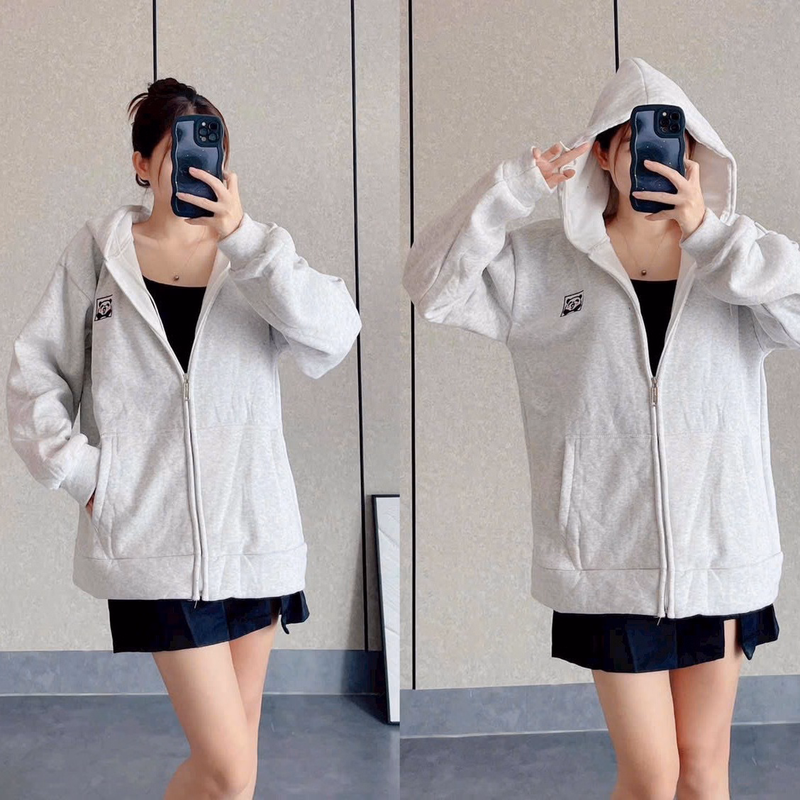 Áo Khoác Nỉ Nữ Phối Với Phong Cách Form Rộng Siêu Đẹp Vải Dày Dặn Có Phối Khóa Kéo In Hình Gấu Trúc Cute Lắm Hàng Hot Trend-Htm Fashion