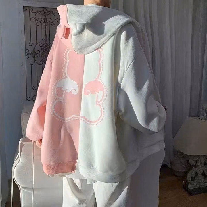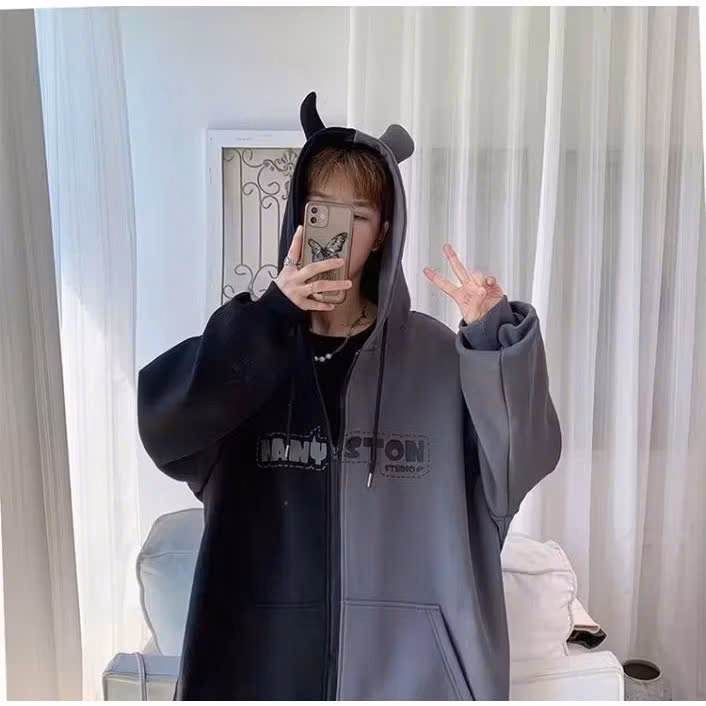Tên sản phẩm: Áo Khoác Nỉ Phối 2 Màu In Gấu Mũ Có Sừng Dễ Thương Form Rộng Unisex Tp85