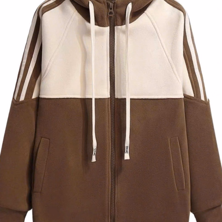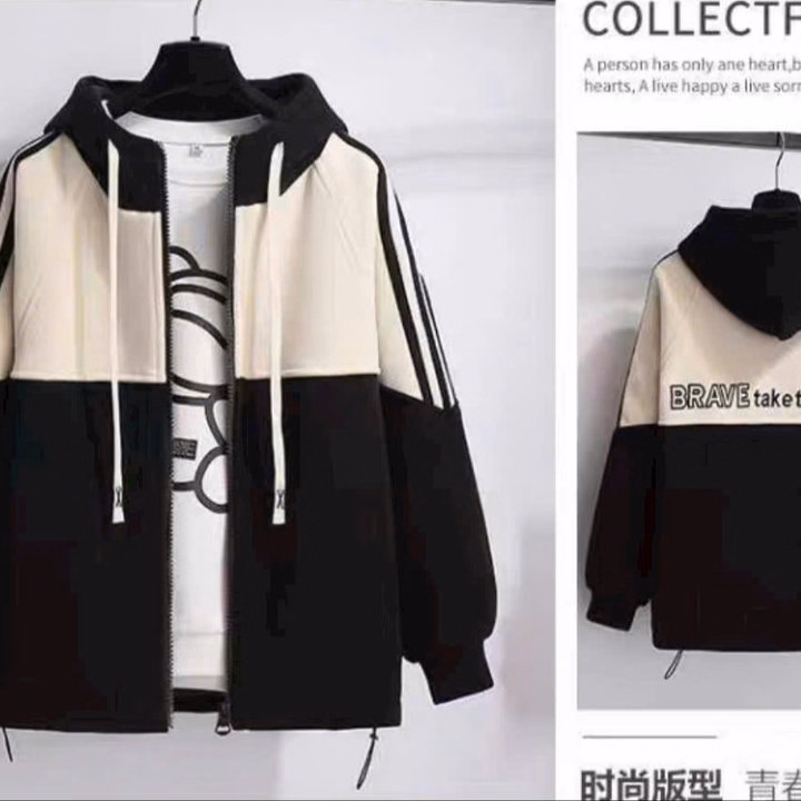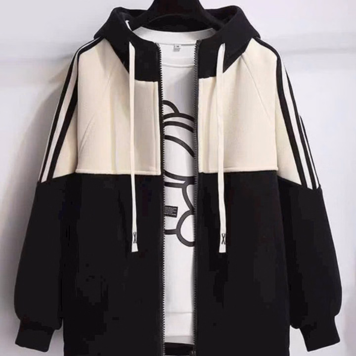 Áo Khoác Dây Kéo Vải Nỉ Phối Sọc Thân In Nổi Chữ Ở Mũ, Có Túi Trong Rộng Tp60 – Golden Dream
