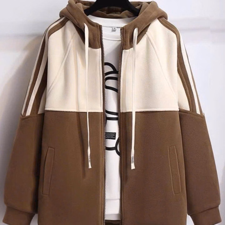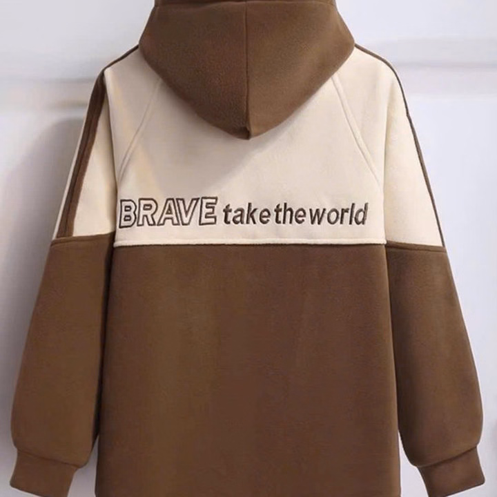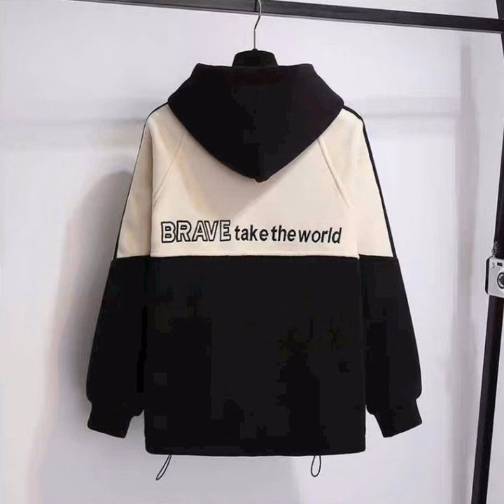 Áo Khoác Nỉ Phối 2 Tông Màu Chữ Thêu Nỉ Dày Dặn Nón 2 Lớp – Htm Fashion