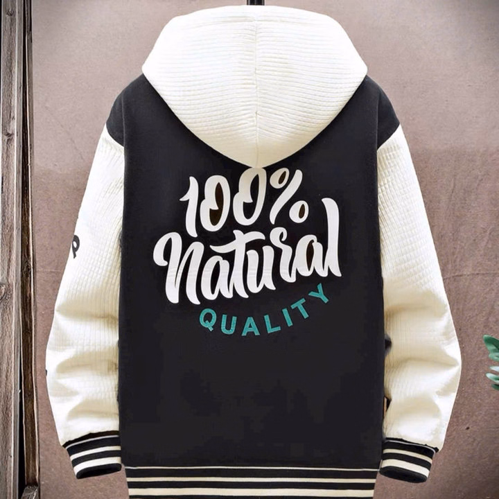 Áo Khoác Nỉ Phối Nút Bấm Có Nón In Họa Tiết 100% Natural – Htm Fashion