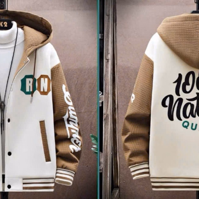 Áo Khoác Dây Kéo Vải Nỉ Phối Sọc Thân In Nổi Chữ Ở Mũ, Có Túi Trong Rộng Tp60 – Golden Dream