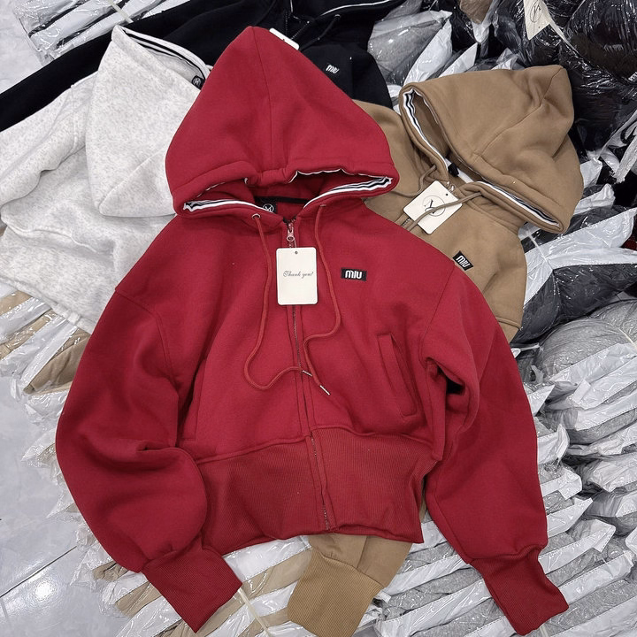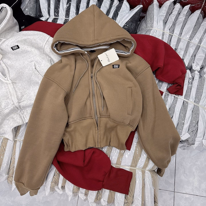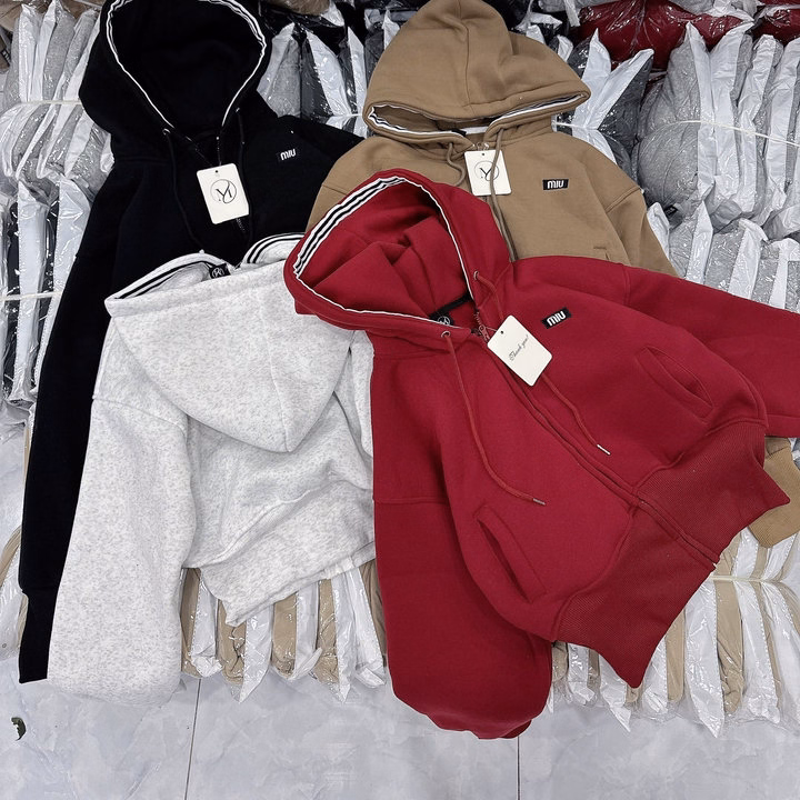 Áo khoác hoodie nỉ bông form rộng là item không thể thiếu trong tủ đồ mùa lạnh. Thiết kế tối giản, dễ mặc với khóa kéo tiện lợi, kèm theo phần nón và dây rút điều chỉnh linh hoạt. Logo “Miu” thêu nhỏ tinh tế, mang lại vẻ ngoài trẻ trung, cá tính và thời trang.