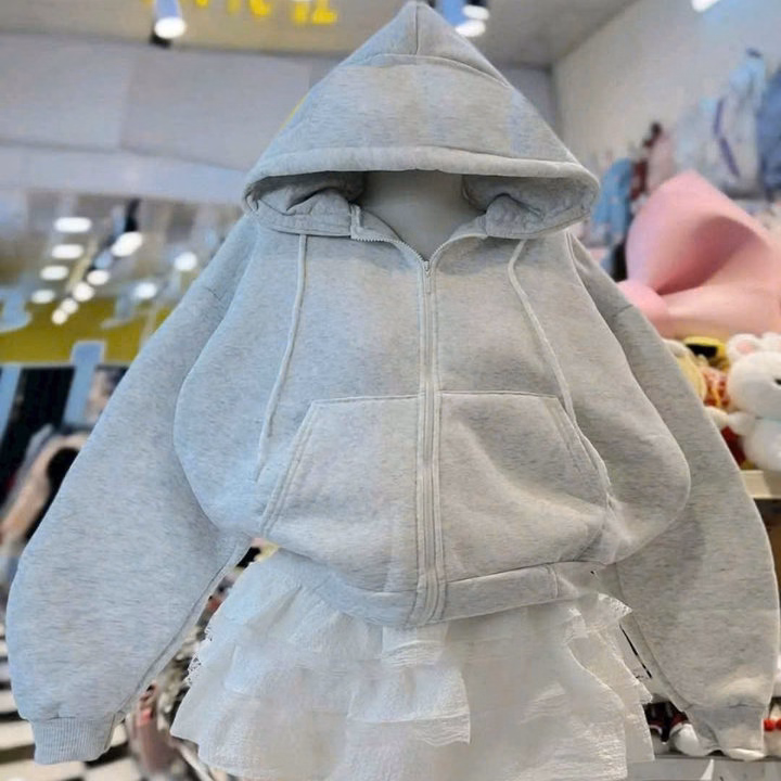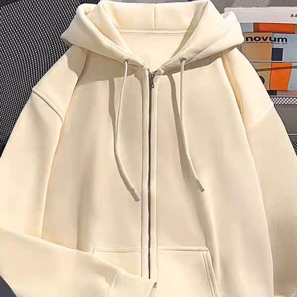 Áo Khoác Nỉ Trơn Nam Nữ Form Rộng Tay Dài Mùa Đông Có Khóa Kéo, Phong Cách Hàn Quốc