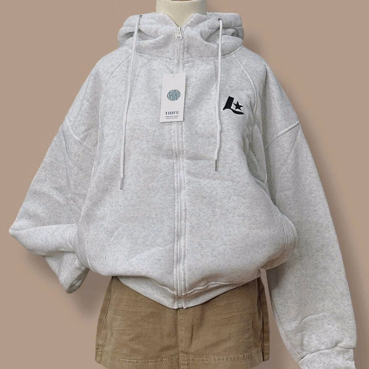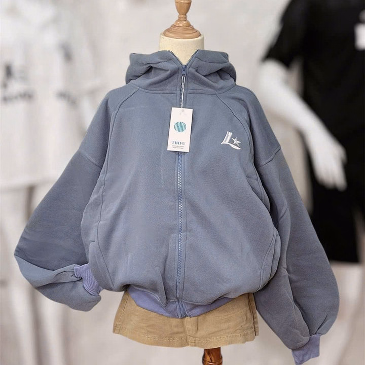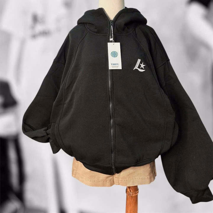 Tên sản phẩm: Áo Khoác Nỉ Unisex Nam Nữ Form Boxy Dày Dặn Thêu Chữ L Sao Hàng Đẹp Bán Shop Tp521