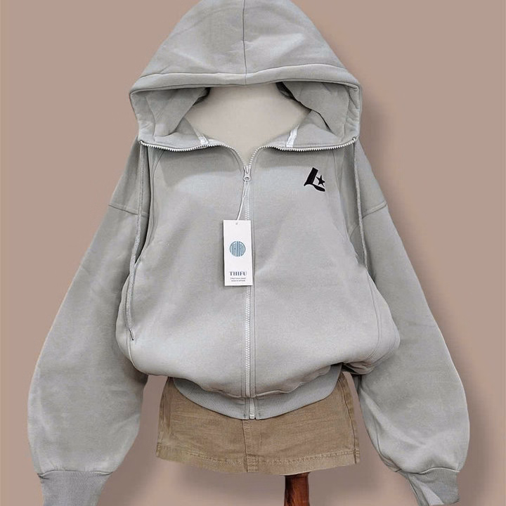 Áo Khoác Croptop Nỉ Nữ Dáng Lửng In Lá Cờ 2 Mặt Trước Sau Có Nón Chống Nắng – Htm Fashion