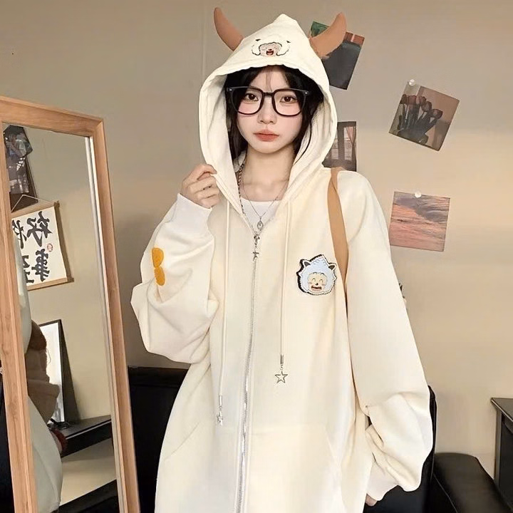 Áo Khoác Nỉ Unisex Nam Nữ In Hình Cừu Trắng Mũ Có Sừng Siêu Xinh Tp80 – Golden Dream