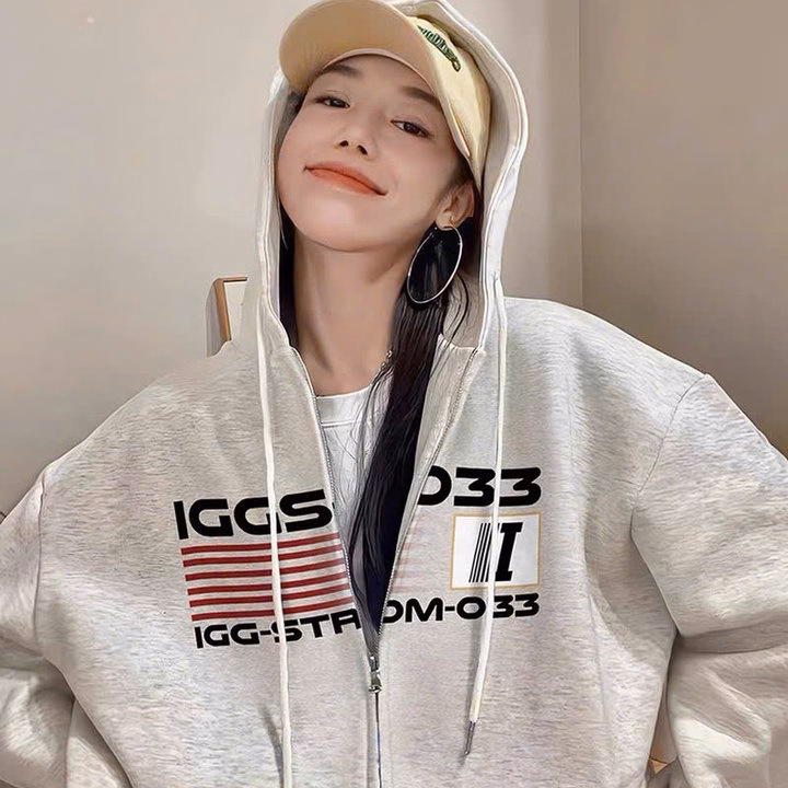 Áo Khoác Dây Kéo Vải Nỉ Phối Sọc Thân In Nổi Chữ Ở Mũ, Có Túi Trong Rộng Tp60 – Golden Dream