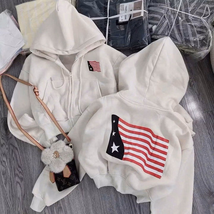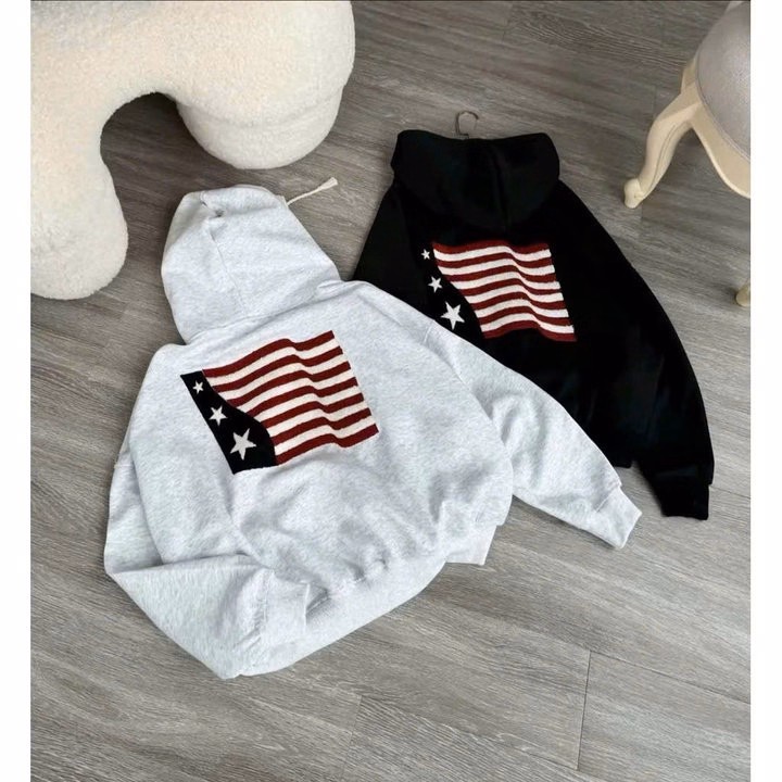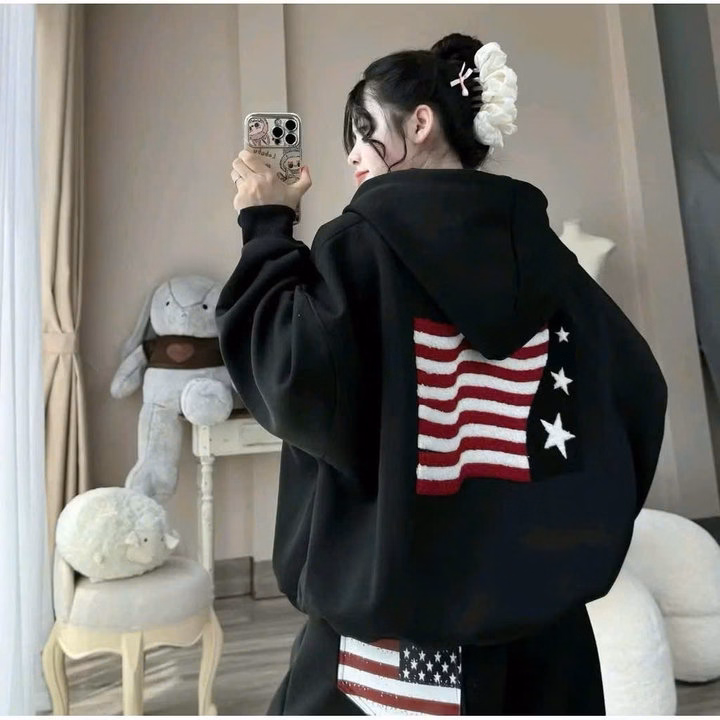 Áo Khoác Nỉ Unisex Tay Phồng – Biểu Tượng Lá Cờ Mỹ, Xu Hướng Mới Cho Cả Nam Và Nữ.