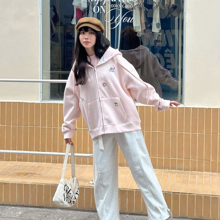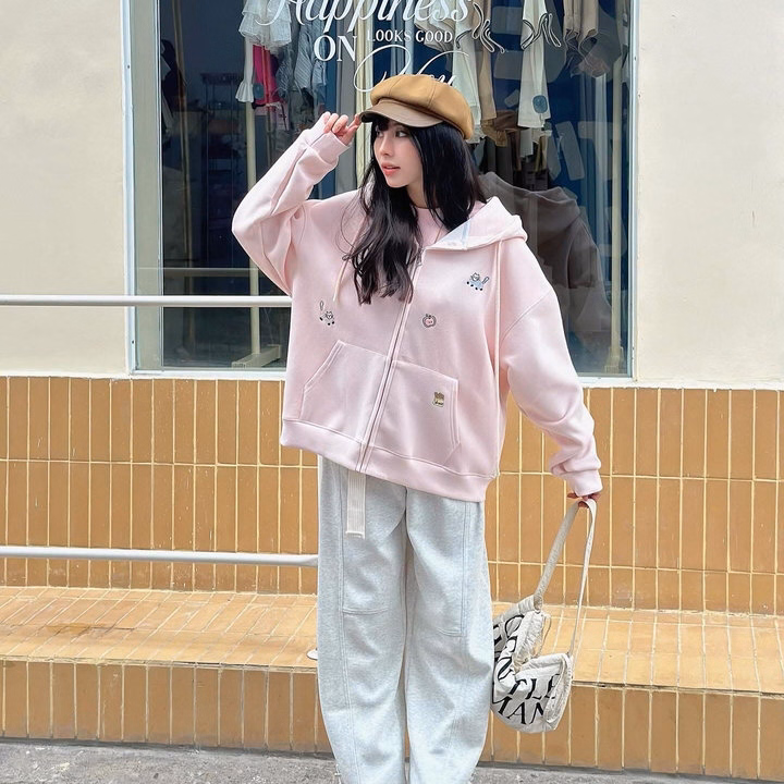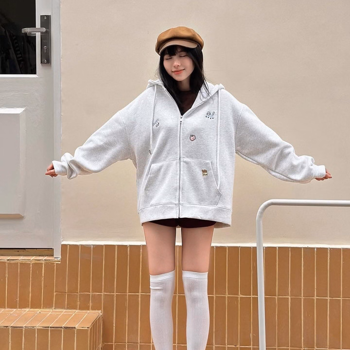 Chiếc áo hoodie nỉ khóa kéo này là lựa chọn cực kỳ đáng yêu cho những cô nàng yêu thích phong cách nhẹ nhàng, dễ thương. Thiết kế form rộng giấu dáng, chất liệu nỉ mềm mịn, giữ ấm tốt, mang lại cảm giác thoải mái cả ngày dài.