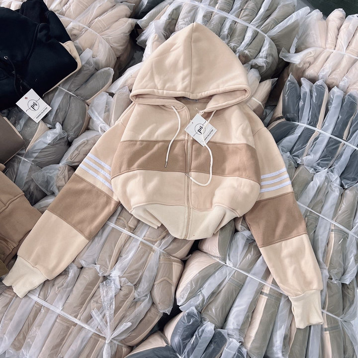 Áo Khoác Dây Kéo Vải Nỉ Phối Sọc Thân In Nổi Chữ Ở Mũ, Có Túi Trong Rộng Tp60 – Golden Dream