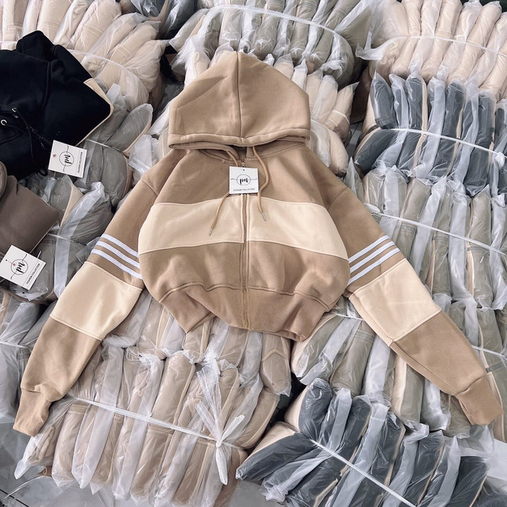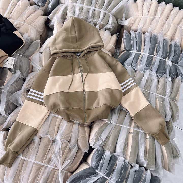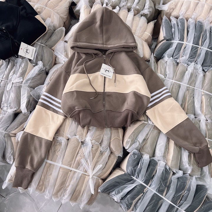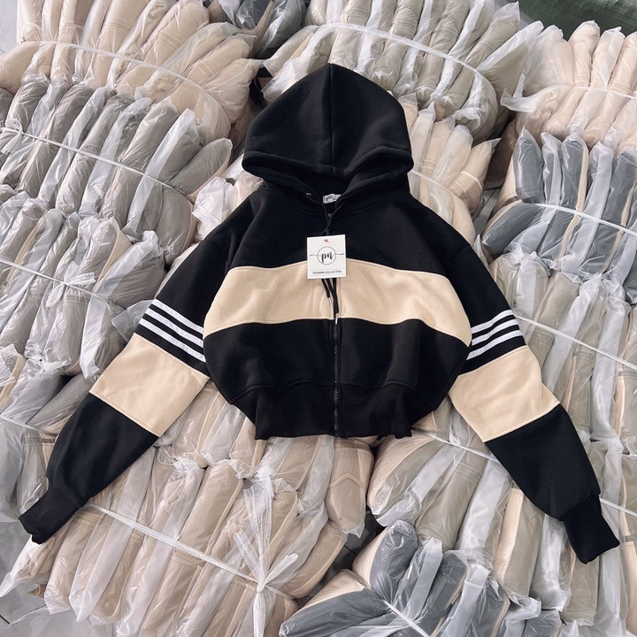 Áo Khoác Nữ Form Lửng Rộng Phối 3 Sọc Tay Mũ Rộng Tay Xỏ Ngón Va88 – Phương Store