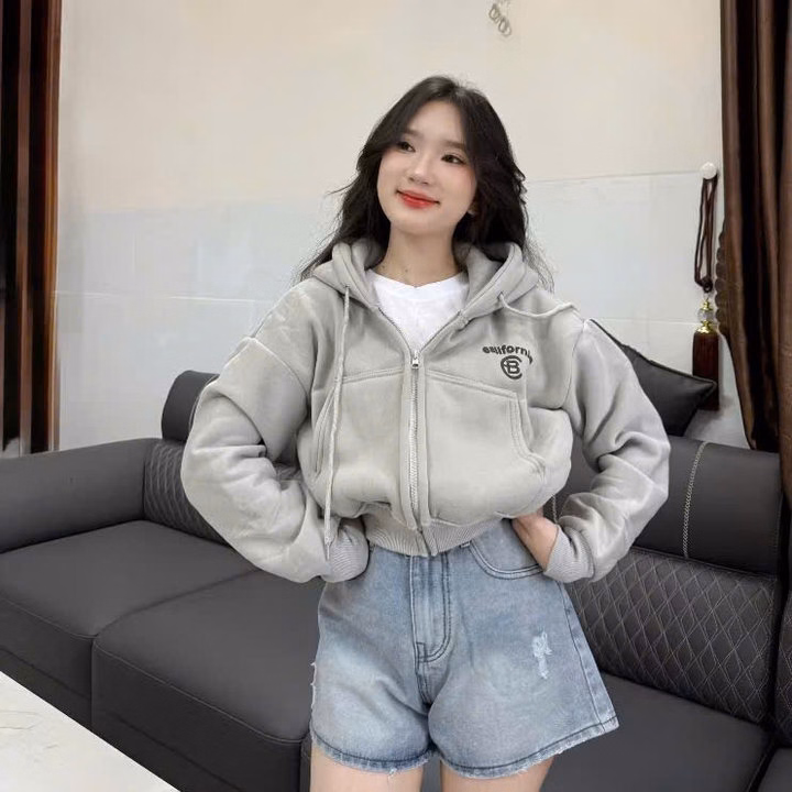 Tên sản phẩm: Áo Khoác Nữ Form Lửng Vải Nỉ Dày Dặn In Nổi Chữ Cb Có Túi Trong Tp69