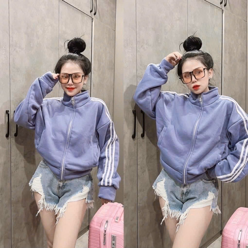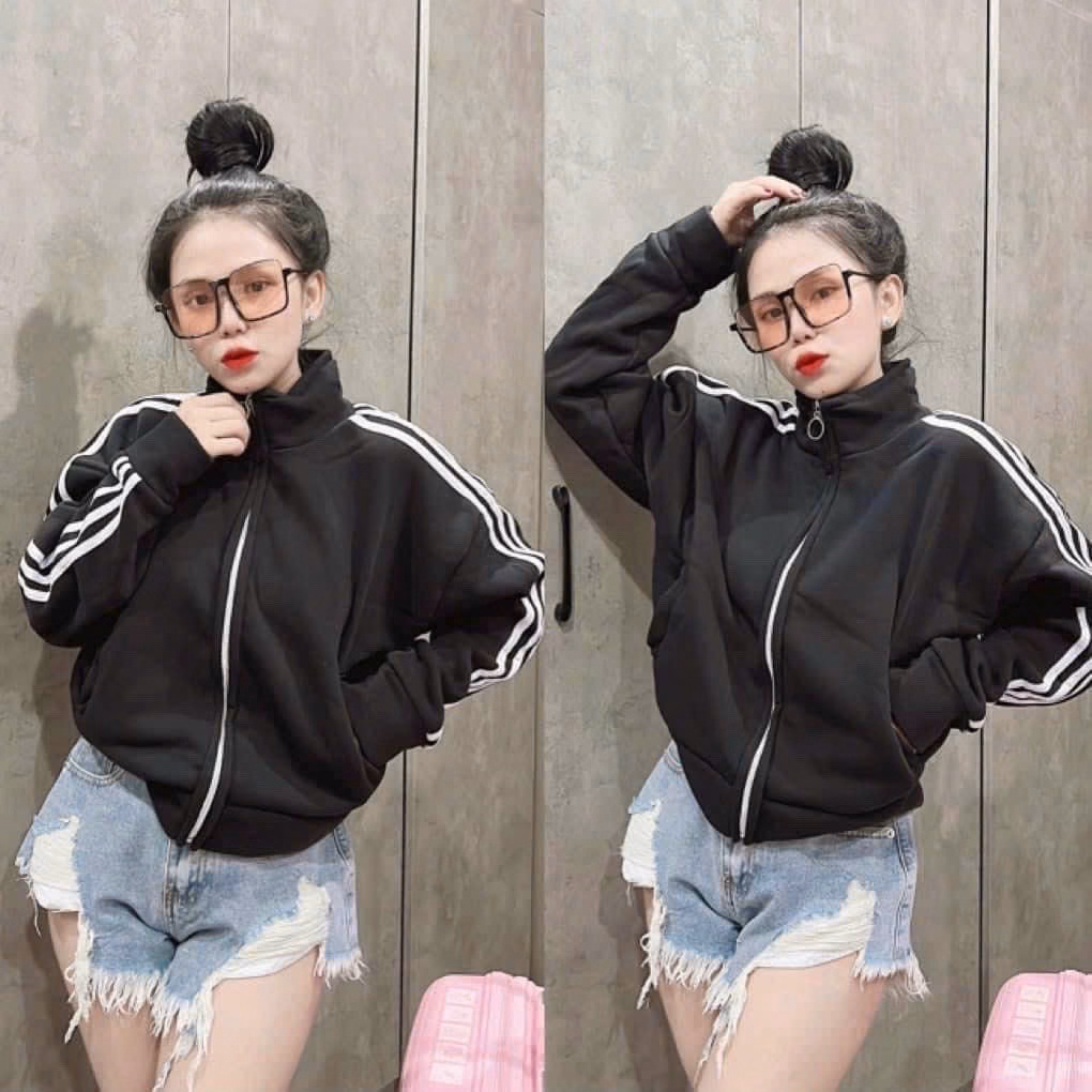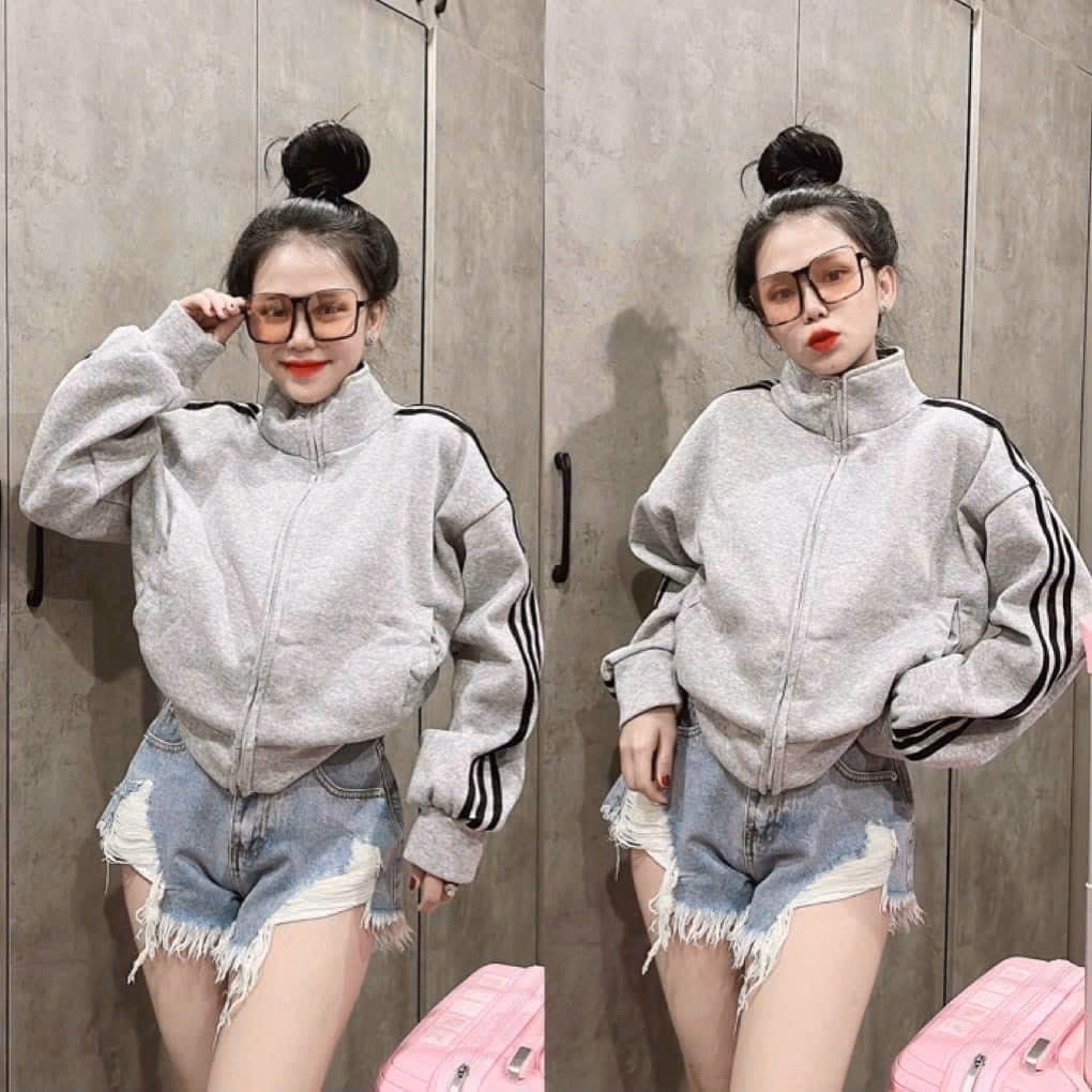 Áo Khoác Nữ Lửng Craptop Chất Vải Nỉ Ngoại Có Cánh Cổ Tay Áo 2 Bên Cánh Tay Chạy Sọc Siêu Nét Hàng Hot Trend-Htm Fashion