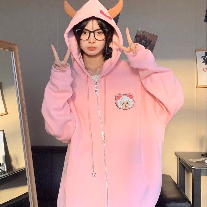 Tên sản phẩm: Áo Khoác Nử Ngoại Nữ In Nổi Hình Cừu Trắng Mũ Có Sừng Xinh Cho Các Nàng Tp43 – Phương Store