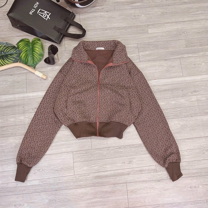 Áo Khoác Nữ Nỉ Dệt 4 Túi In Nhiều Chữ Guessg – Htm Fashion