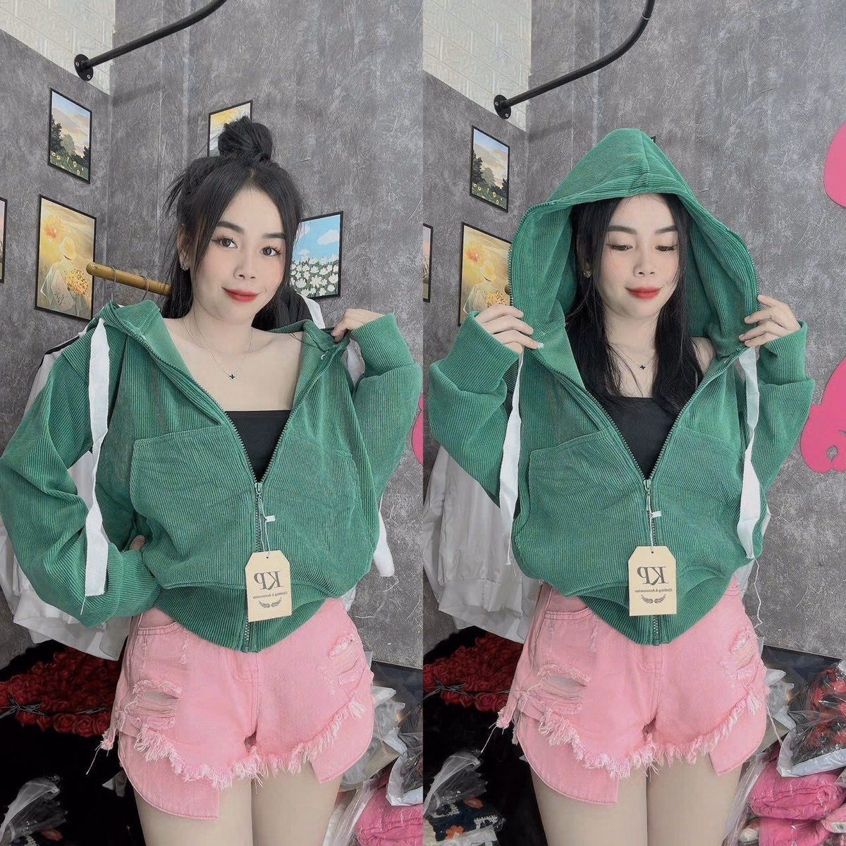 Áo Khoác Croptop Lửng Nữ Có Túi Trong Tay Xỏ Ngón Thêu Nổi Prfc – Htm Fashion