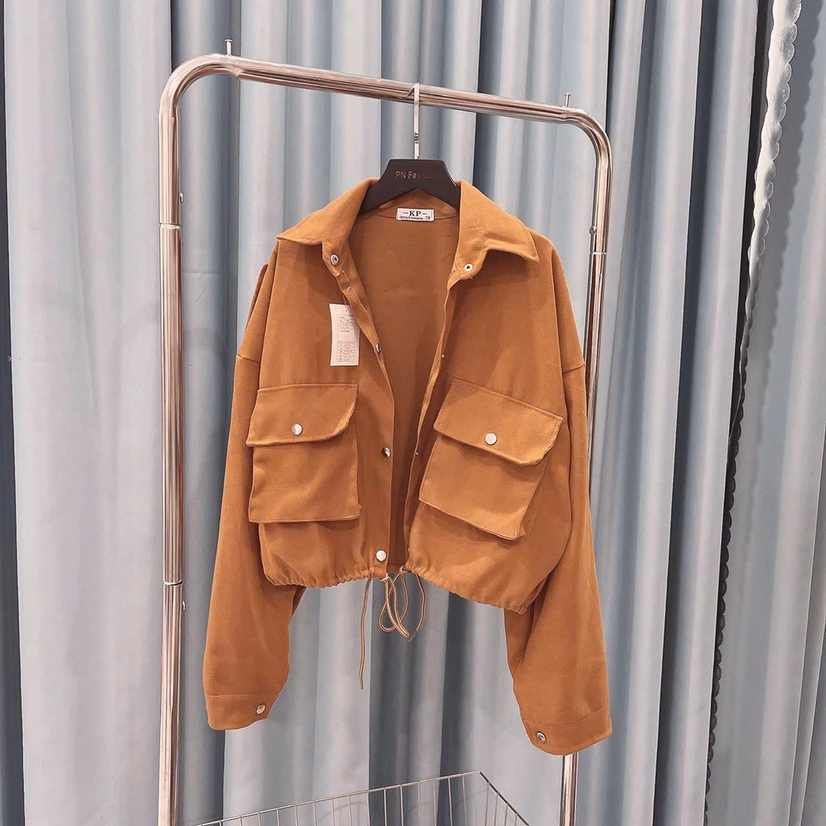 Áo Khoác Croptop Lửng Nữ Có Túi Trong Tay Xỏ Ngón Thêu Nổi Prfc – Htm Fashion
